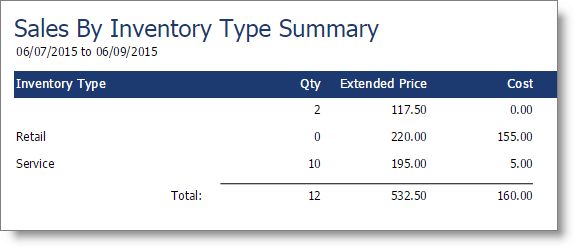 This report shows information about inventory items sold to clients in the program, grouped by inventory type.