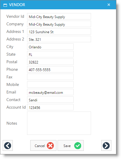 The Vendor Id is how you will most often refer to a vendor inside of the software. Most often you can just use the vendor's company name or an abbreviated version of the name.